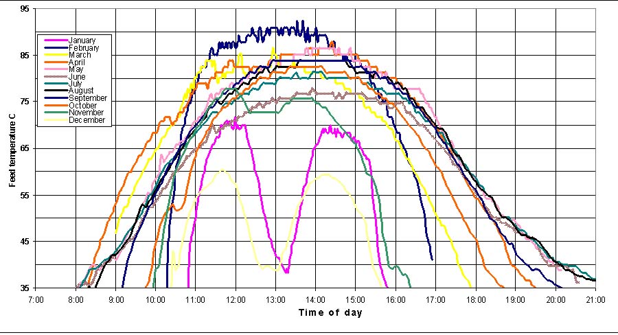 heat exchanger. After that, the panels operated in full summer sun without exceeding 90º C.